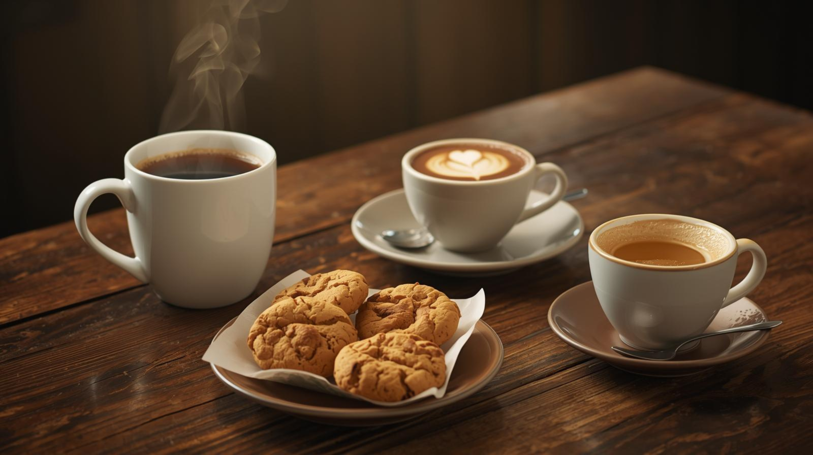 De koffie, thee, chocomel en koekjes staan voor je klaar!